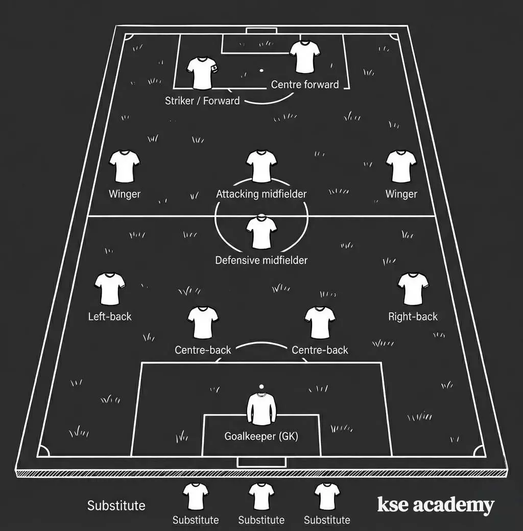 Knowing the positions is fundamental for understanding match tactics and commentary. Here are the main positions on the pitch: