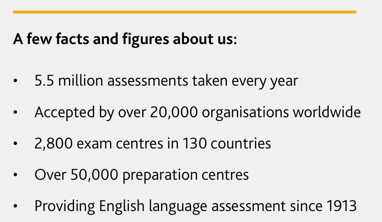KSE Academy is an Official Preparation Centre for Cambridge Assessment English, affiliated with the Exams Granada examining centre (ES815), so you can ask me anything you want, and I will be able to inform you without problems. And if I don’t know the answer, I will ask and get the information to you.
